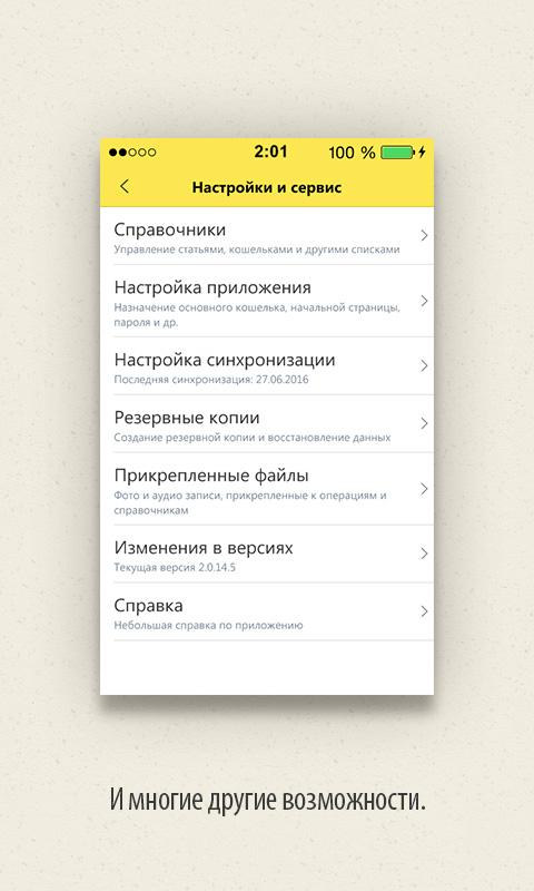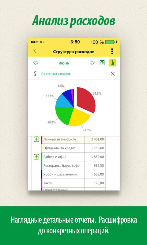 Het beheer van persoonlijke en familie financiën. Synchronisatie met "1C: Money 8" voor de PC.