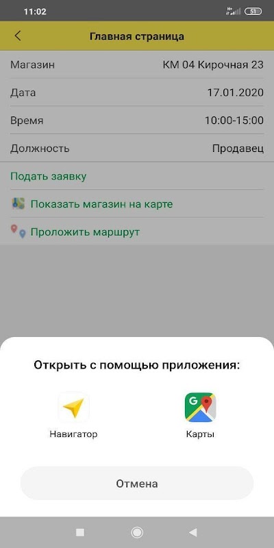 Een applicatie voor medewerkers van de verenigde winkelketen Chitai-gorod - Bukvoed, waarmee u het zoeken naar vervangingen voor bestaande winkelmedewerkers kunt automatiseren. Het is mogelijk om actuele applicaties op de kalender te volgen, een route naar de winkel op de kaart te bouwen, in contact te zijn met de winkel, meldingen te ontvangen op je mobiele telefoon.