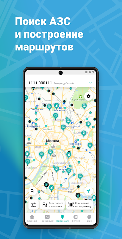 We hebben het grootste dekkingsnetwerk en u kunt tanken op de stations van Rosneft, Gazpromneft, Lukoil, Tatneft, Shell en vele anderen, evenals betalen voor wassen en bandenmontage.