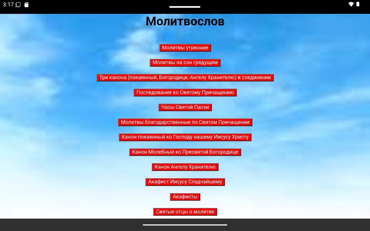 Het orthodoxe gebedenboek bevat: Ochtendgebeden, Voor het slapengaan, Regel voor de Heilige Communie, Akathisten, Gedachten van de Heilige Vaders over gebed