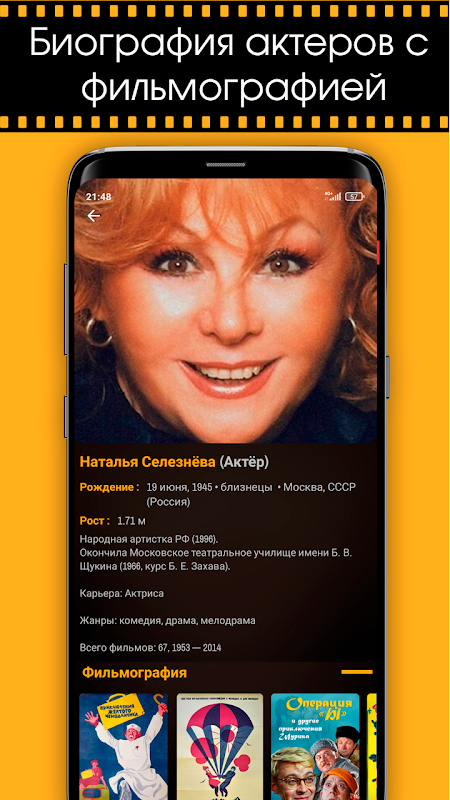 Nashe Kino - Soviet Films and Series Online is de grootste online bioscoop met de meest iconische films en tv-series uit het Sovjettijdperk. Onze collectie omvat meer dan 1000 series en films: van Sovjetfilmstudio's tot festivalpremières, dit zijn geweldige filmklassiekers.