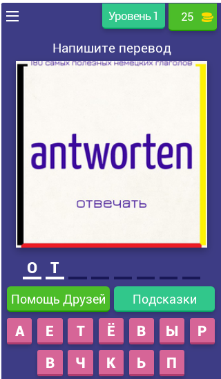 Приложение "Немецкие Глаголы ТОП-180" - увлекательное обучающее приложение, в игровой форме изучите все основные глаголы немецкого языка.