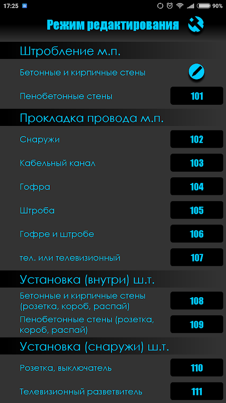 Programma Ontwerp voor de prive-master elektricien voor de berekening van de kosten van de elektrische installatie in de kamer. Met dit programma kunt u de kosten van de werken voorzien voor uw klanten berekenen. Voor alle vragen en suggesties, schrijf dan naar onze e-mail. In onze toepassing, het ontbreken van reclame.