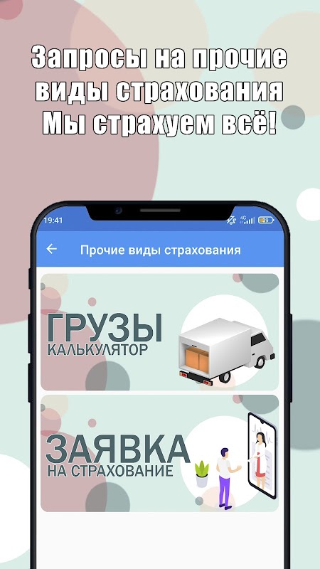 In de applicatie kunt u een aanvraag indienen voor verzekeringen voor andere soorten (vracht, verzekering van rechtspersonen, eigendom, aansprakelijkheid, enz.). Een rekenmachine voor vracht is beschikbaar (eenmalig en algemeen contract), een aanvraag voor verzekering via andere soorten.