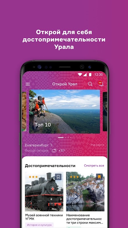 Туристический гид “Открой Урал” - это официальное приложение для путешествий по Свердловской области, включающие в себя все лучшие достопримечательности, маршруты и экскурсии Урала.