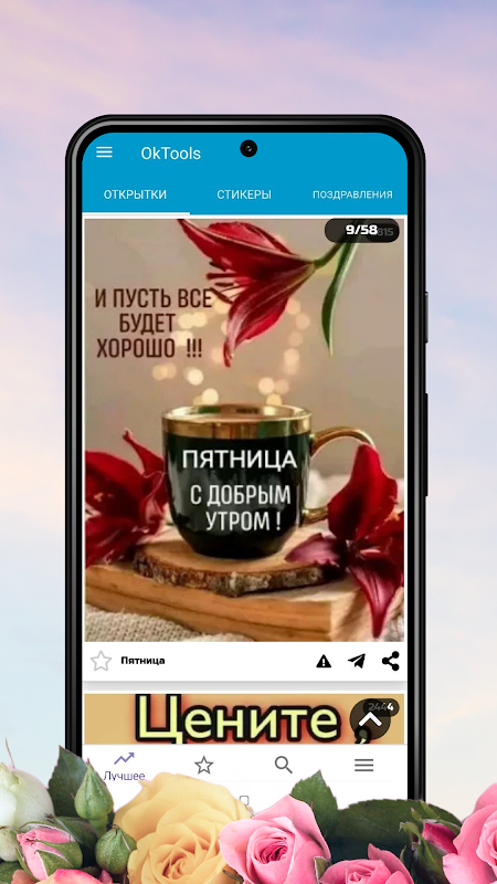 Ansichtkaarten, stickers, gefeliciteerd voor elke vakantie en voor elke gelegenheid. Stuur ansichtkaarten, stickers naar elke messenger of sociale media. netwerk met uw vrienden of met een groep.