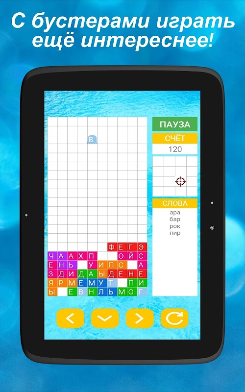 Falling Blocks | Word Puzzle ("Падающие блоки | Словесная головоломка") — это простая, весёлая и захватывающая игра-головоломка. Цель игры — расположить падающие фигуры (тетрамино) так, чтобы образовывались слова. Созданное слово исчезает с поля. За каждое составленное слово вы зарабатываете очки. Чем длиннее слово и чем выше скорость — тем больше очков. Игра завершается, когда новый блок не может попасть на поле. Скоро в игре появится рейтинг — поэтому уже сейчас начинайте набирать очки, чтобы стать лидером!