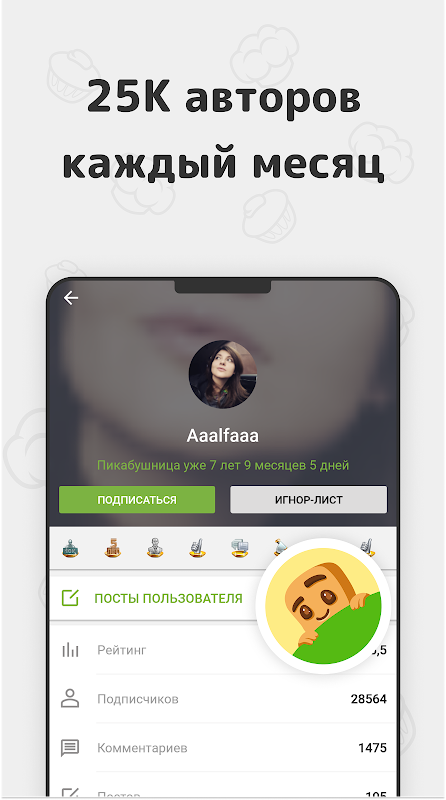 Elke dag in de applicatie - 2500 nieuwe berichten. Dit zijn levensverhalen, nieuws, grappen, memes, meningen over alles in de wereld, lifehacks, foto's, video's en nog veel meer. Elk bericht is uniek! De publicaties met de hoogste beoordeling vallen in de secties "Hot" en "Best". Je kunt ook stemmen op je favoriete verhalen en je abonneren op thematische communities voor elke smaak: over films, boeken, reizen, videogames, science-pop, handwerken, auto's en vele anderen.