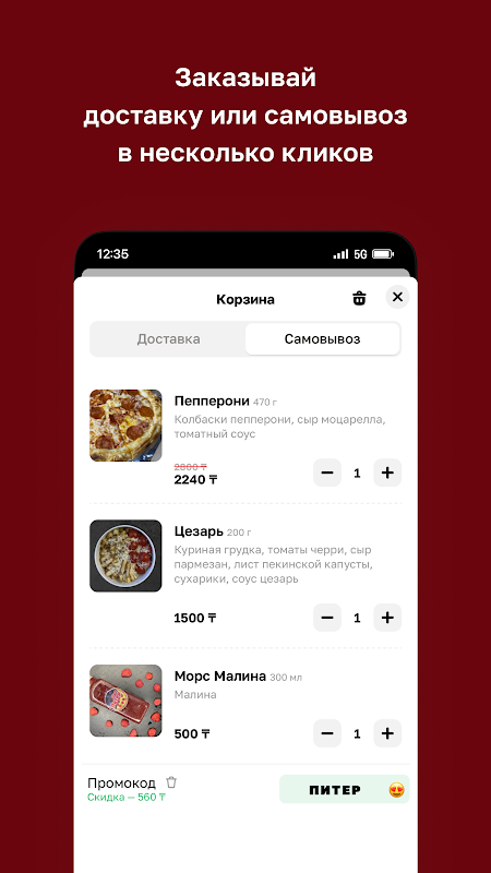 De mobiele applicatie "Peter Pizza" is uw betrouwbare assistent in de wereld van de heerlijke en aromatische keuken! Met deze applicatie kunt u snel en eenvoudig de menukaart bekijken, gerechten naar wens selecteren en direct vanaf uw smartphone bestellen.