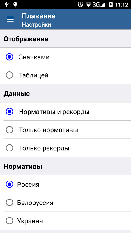 Het programma biedt een handige interface voor het werken met de normen van sportcategorieën en sporttitels zwemmers in de volgende landen: