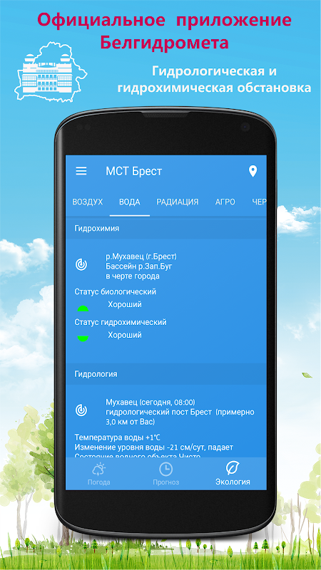 "WEATHER IN A POCKET" is de mobiele app van Belhydromet.