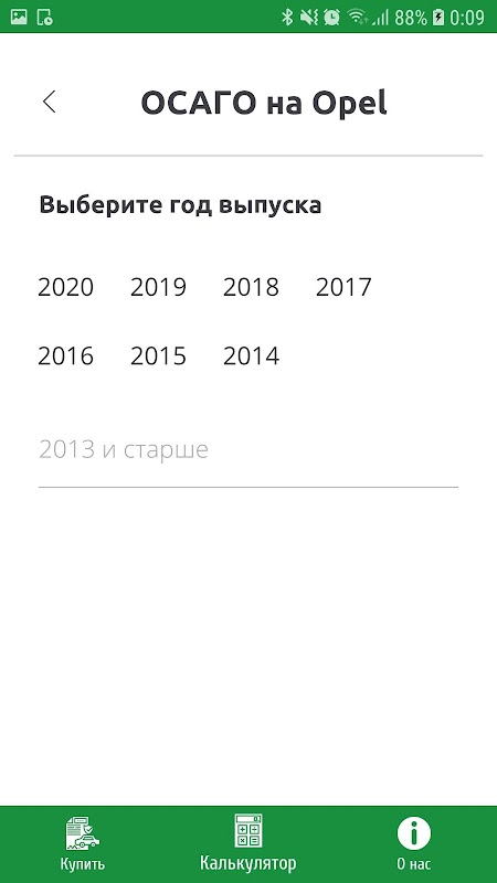 Download de mobiele applicatie, voer het merk van de auto, het jaar en het aantal bestuurders in, en de calculator zal een berekening maken en de meest interessante opties tonen voor het kopen van een CTP-beleid.