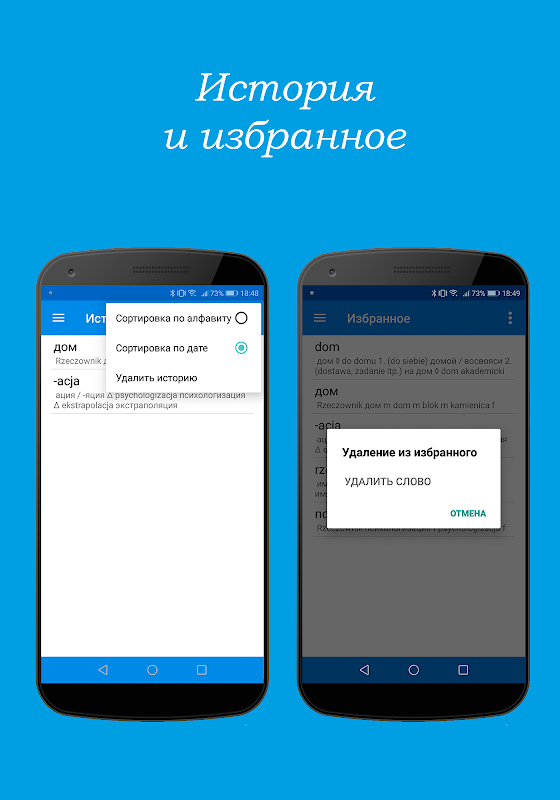 Ben je het zat om grote en zware woordenboeken bij je te hebben? Alles wat je nodig hebt, staat nu op je smartphone! Pools-Russische en Russisch-Poolse offline woordenboeken zijn altijd bij je, waar je ook bent - thuis studeren, reizen of Pools studeren. Het woordenboek bevat ongeveer 137 duizend veelgebruikte en gespecialiseerde woorden!
