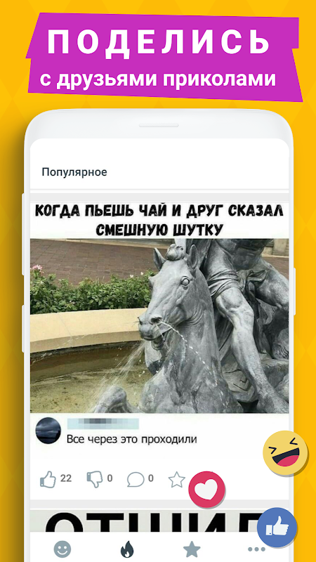 Deel je favoriete grappen met je vrienden. Met onze applicatie kunt u uw favoriete publicatie naar elke messenger verzenden of een publicatie op sociale netwerken maken.