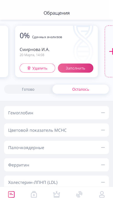 - Op basis van uw vragenlijst, genereert de applicatie een lijst met tests voor aflevering (dit zijn zowel biochemische en hormonale parameters, en zelfs indien nodig tumormarkers);
