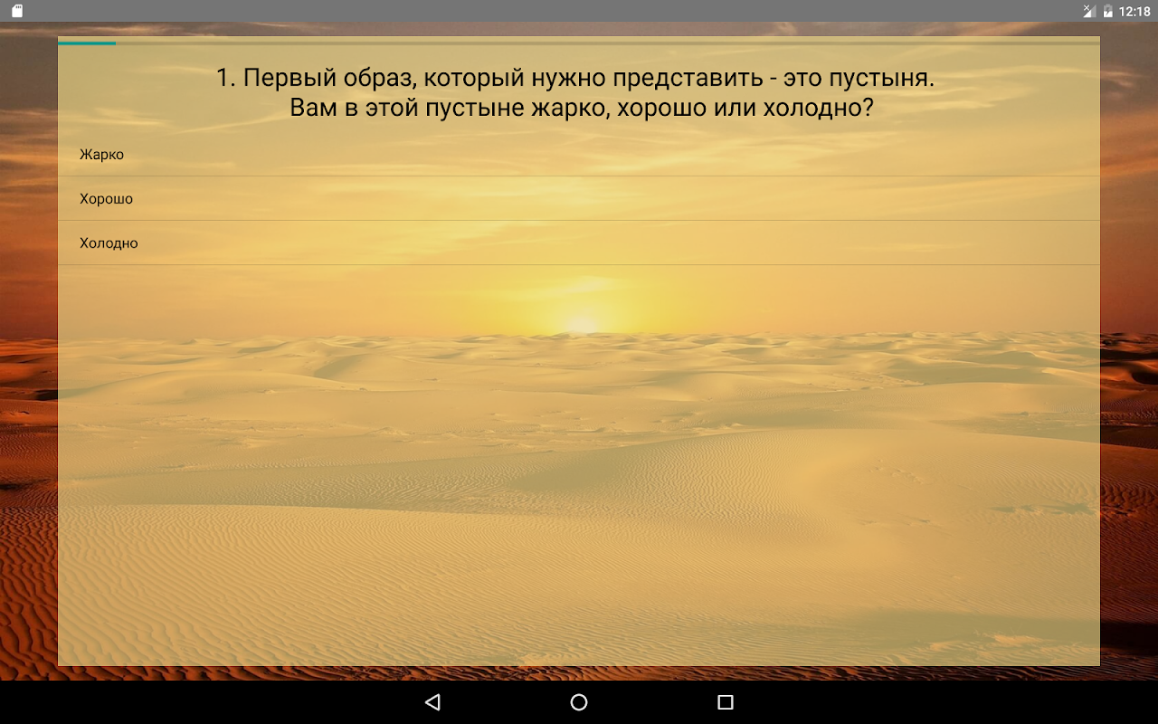 Психологический тест "Пустыня" относится к разряду ассоциативных тестов, прохождение которого не займёт много времени. Он довольно популярен, потому что позволяет в короткий срок получить общий психологический портрет.