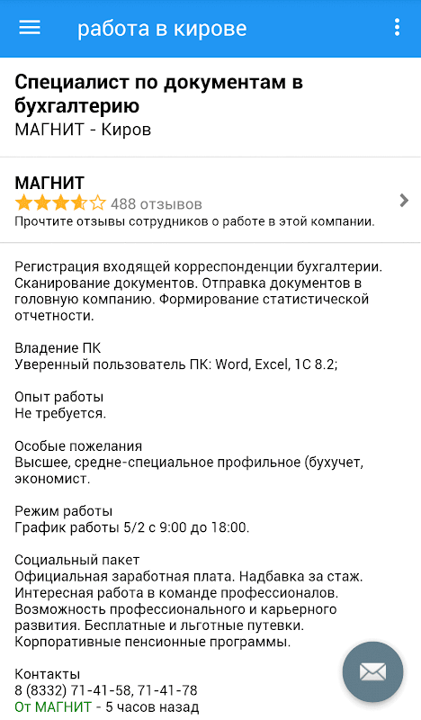 Используя портал Работа в кирове, вы сможете подобрать лучшие вакансии, при этом, вы можете использовать фильтры для сортировки поисковых результатов. Наша мощная интеллектуальная система поиска работы позволяет предложить вам лучшие вакансии кирове, соответствующие вашим требованиям.