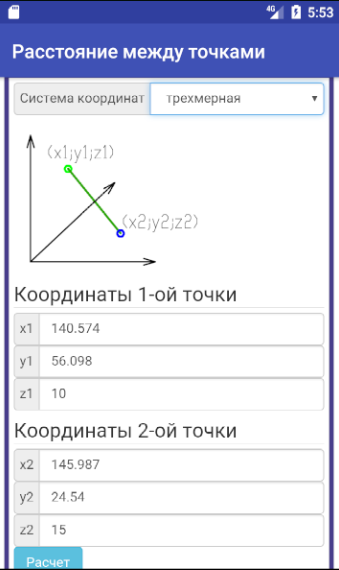 3. Задайте координаты второй точки (x2,y2 и при необходимости z2)