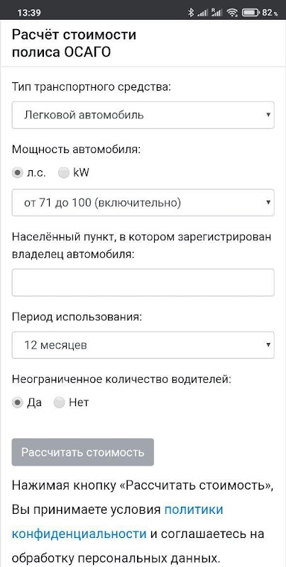Расчет ОСАГО 0.5