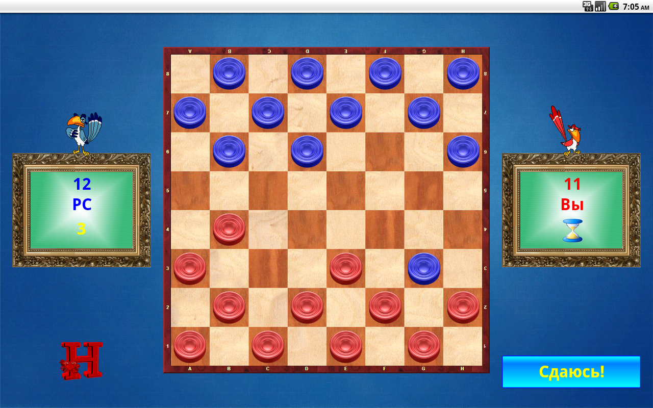 Интеллектуальная игра на шахматной доске для двоих игроков. Оригинальный дизайн главного меню. Ненавязчивое звуковое сопровождение и озвучка ходов. Сыграв 10 конов, при хорошем счёте игрок попадает как в локальную, так и в мировую таблицу чемпионов. Требуется размер экрана 800x480 или лучший. Поддерживаемый язык: Русский.
