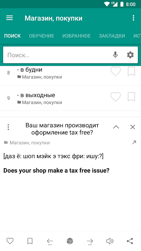 • Mogelijkheid om bladwijzers te maken en voeg het woord aan uw favorieten.