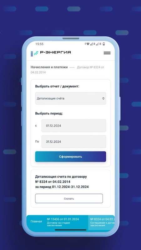 Met behulp van een pushmelding herinnert de applicatie u aan de overdracht van metingen, aan de factuur en de vervaldatum voor betaling.