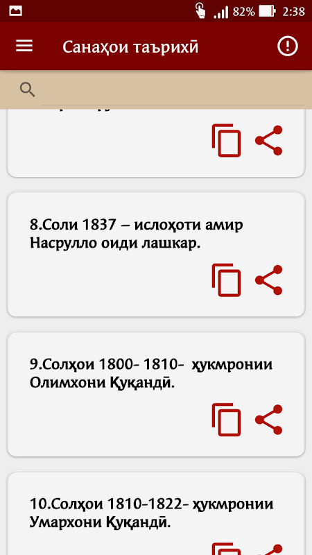 Дар барнома санаҳои муҳими таърихӣ ҷамъ оварда шудааст.