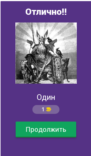 Игра для любителей скандинавской мифологии. Здесь вы можете испытать свои знания по данной теме. Сможете ли вы ответить на все вопросы? Есть вопросы как про отдельных персонажей, таких как Один, так и заканчивая целыми мирами, такими как Асгард.