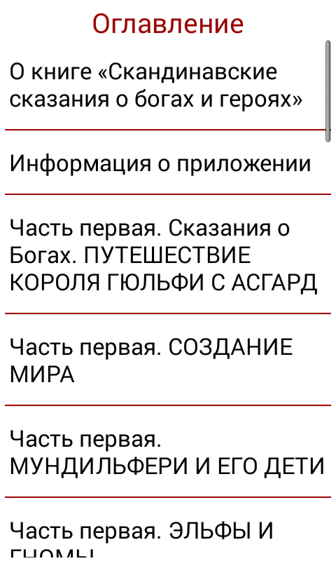 De Scandinavische legenden over goden en helden. Dit boek laat u kennismaken met de Scandinavische legenden over goden en helden. Het vertelt over de wijze vader van de goden Odin, een rode baard Bogatyr Thora en de eeuwige strijd met de wrede reuzen Grimtursenami van sluwe trucs van sluwe god Loki en een andere van de vele en vele andere helden van de noordelijke epos.