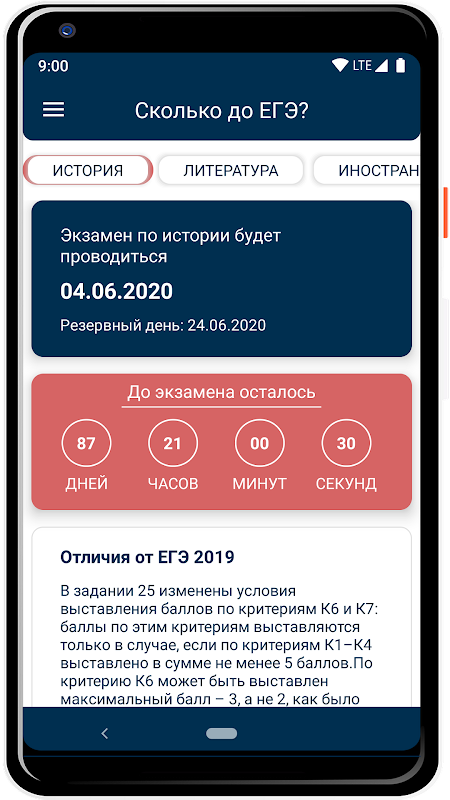 De applicatie telt hoeveel dagen, uren, minuten en seconden er nog zijn tot een van de examens