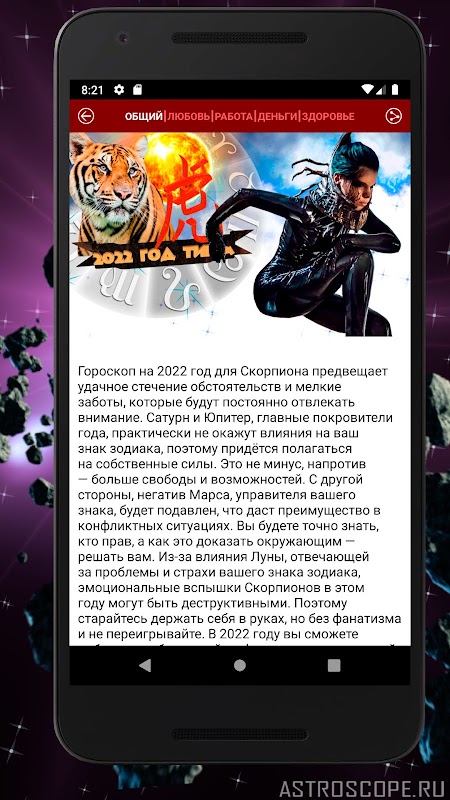 De applicatie is ook ontworpen voor perspectieven op langere termijn. Voor de bezitters van het sterrenbeeld Schorpioen wordt de jaarlijkse horoscoop gepresenteerd voor 2022. Schorpioenen zullen op basis van de aanbevelingen van astrologen veel gemakkelijker kunnen bepalen welke gebieden van hun leven moeten worden aangepast.
