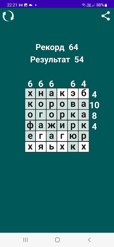 Vul de vakjes in met letters zodat je zoveel mogelijk woorden krijgt. Woorden worden horizontaal van links naar rechts en verticaal van boven naar beneden ingevuld. Voer de eerste letter van het toetsenbord in, de tweede zelf verschijnt boven het vierkant en u hoeft alleen de cel op te geven. Voer de derde letter in, de vierde verschijnt vanzelf. En zo verder, totdat je het hele vierkant hebt gevuld.