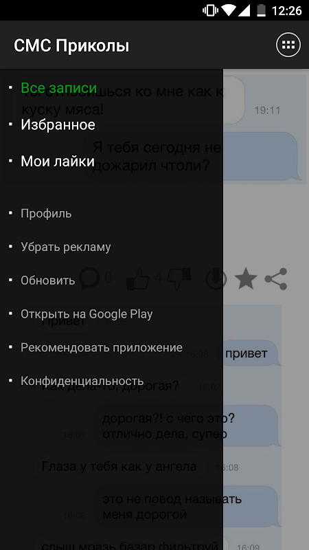 Повседневные и смешные переписки и ситуации, разнообразные юмор и новые веселые смс-сообщениях. Студенчество и любовь всегда находят живейший отклик в сердцах молодежи и их шутках. Переписки с юмором от родителей читают все поколения, программисты и офисные работники обожают подкалывать друг друга в рабочей обстановке. Тысячи пользователей ежедневно загружают новые смешные СМС переписки, хохочут над чужими приколами.