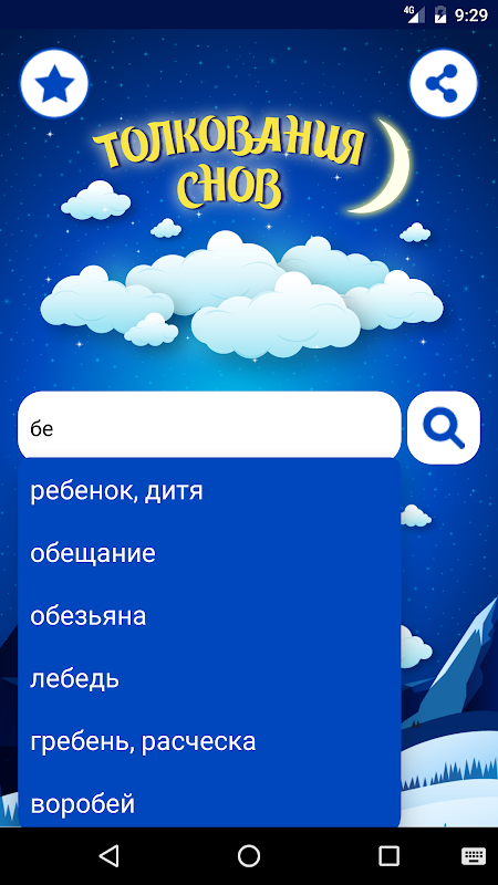 В приложении реализован удобный поиск "на лету", интеллектуальные подсказки покажут вам доступные слова и словосочетания, которые потенциально могут быть вам интересны. Интерфейс приложения адаптирован под ночное время суток для максимально удобного чтения. База данных снов и сновидений и без того огромна, но обязательно будет регулярно пополняться новыми толкованиями снов.
