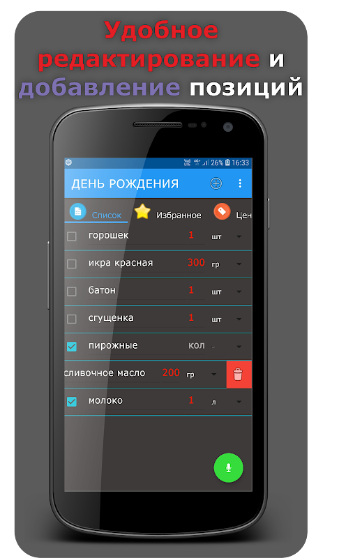 Оптимизируйте свой поход в магазин с приложением "Список покупок". Создавайте и храните необходимые списки покупок вручную или голосом, диктуя весь список без остановки. Делитесь списками покупок с родными, близкими и друзьями. Расшифруйте полученный текст и преобразуйте его в список покупок. Отмечайте в магазине приобретенную позицию, отслеживайте цены товаров, а также добавляйте и пользуйтесь скидочными картами не выходя из приложения. Удобное редактирование, в том числе и голосом, простой и понятный интерфейс. Удачи!