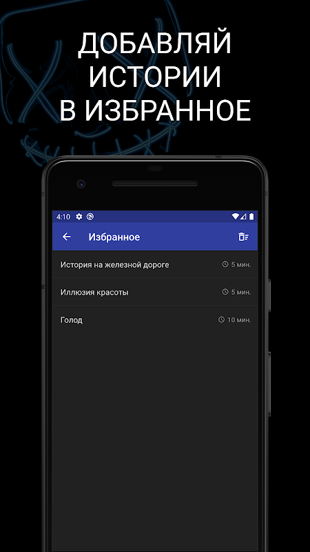 - С нашим приложением у вас есть возможность читать страшилки без интернета каждый день