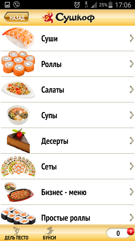 С помощью этого бесплатного приложения ресторана доставки "Сушкоф и Дель Песто" вы круглосуточно можете заказывать блюда благородной японской кухни, а так же сочную пиццу и настоящую паназиатскую лапшу. Мы осуществляем доставку по всему Екатеринбургу, Первоуральску, Нижнему Тагилу и Каменску-Уральскому.