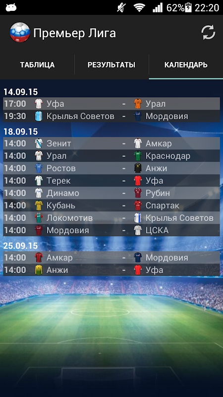 APKPure gebruikt handtekeningverificatie om virusvrije Таблица Российского Чемпионата APK downloads voor u te garanderen.