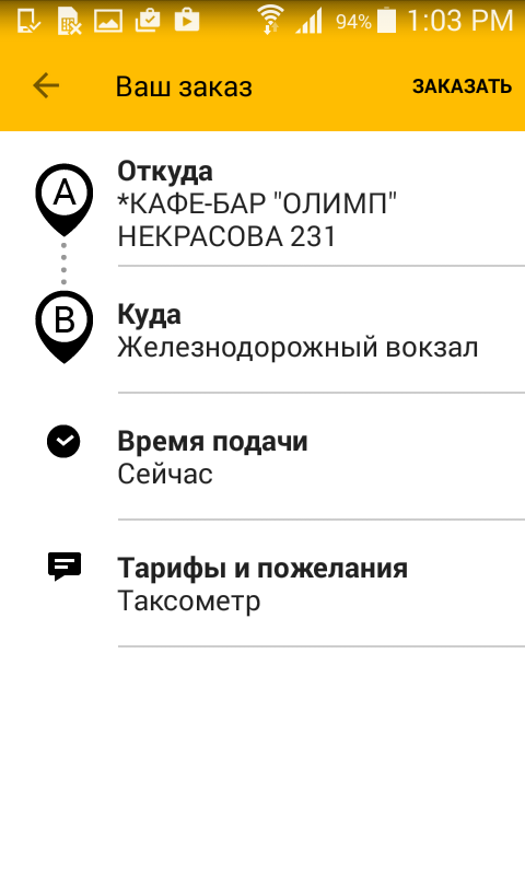 - Звуковой сигнал проинформирует вас о прибытии такси;