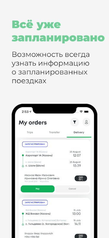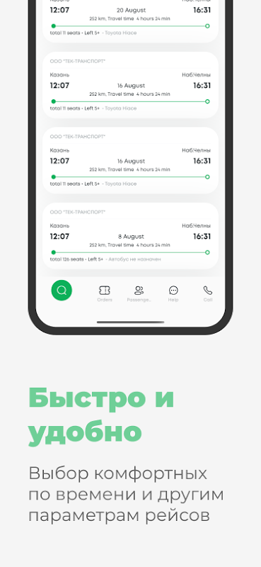 Aanvraag voor online boeking van reizen van Nab. Chelnov naar Kazan en terug