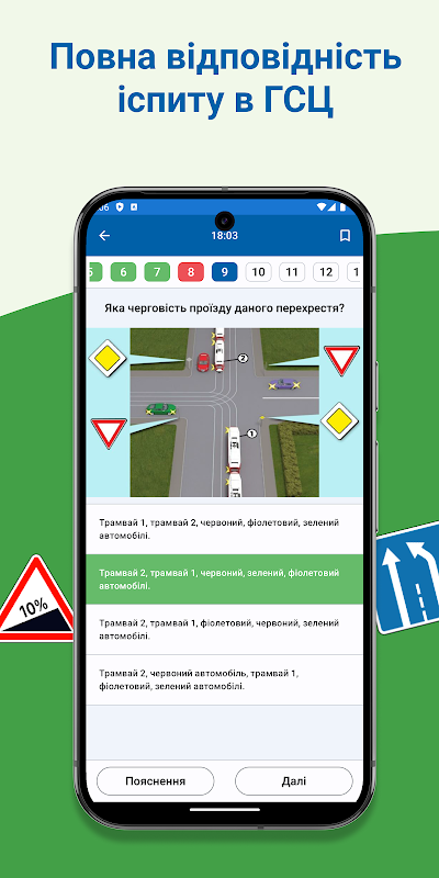 • Trainingsmodus voor succesvolle voorbereiding op het theorie-examen voor het behalen van een rijbewijs