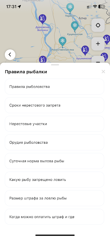 We hebben ook informatie over de visserijregels in een toegankelijke vorm gepresenteerd, inclusief aansprakelijkheidsmaatregelen. U kunt kennismaken met geo-informatielagen die aangeven welke verboden en aanbevolen plaatsen zijn voor het vangen van bepaalde vissoorten. Vind plaatsen om uitrusting en aas te kopen om volledig voorbereid te zijn op uw visavonturen.