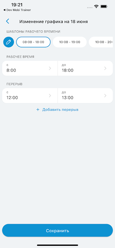 Een applicatie voor trainers van fitnessclubs die het softwareproduct "1C: Fitness Club" gebruiken.