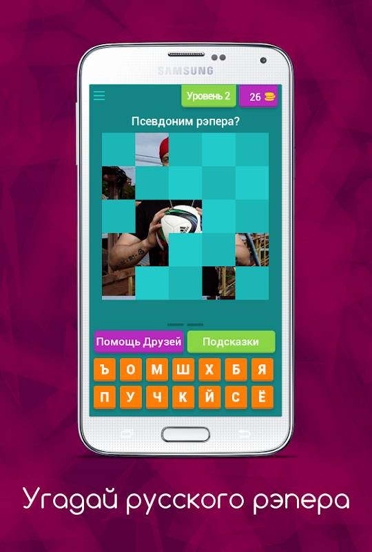 Увлекательное приложение Угадай русского рэпера - отличный способ провести свободную минуту в любом месте: в транспорте, в очереди или сидя за столиком в кафе. Викторина построена по принципу шоу Поле Чудес и подразумевает отгадывание слов - рэперы: батл рэперы, популярные рэперы, клауд рэперы, лирики и исполнители различных стилей. К услугам пользователя подсказки, кнопка Помощь Друзей и деньги, используя которые можно показать одну из букв или перейти на следующий уровень, чтобы отгадывать другие любимых рэперов.