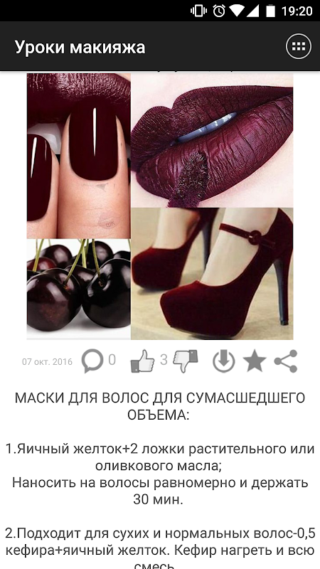 В приложении вы найдете советы по уходу за кожей лица, мода и стиль одежды для женщин, как правильно наносить макияж, всё о красивых волосах, как увеличить губы визуально, женская красота и макияж советы, мастер классы, самые полезные советы о том, как стать красивой, удаление морщин, повседневный макияж и как сделать макияж на вечер, как ухаживать за собой, женские хитрости, модные образы, макияж пошагово, как избавиться от прыщей, ароматерапия, makeup photo, макияж для карих глаз, советы красоты и здоровья для девушек, женская мода, женские секреты красоты, макияж для голубых глаз, как понравится парню, подробное описание макияжей для зеленых глаз, модные прически на праздник, прически на каждый день, макияж в стиле популярных звезд и многое другое.