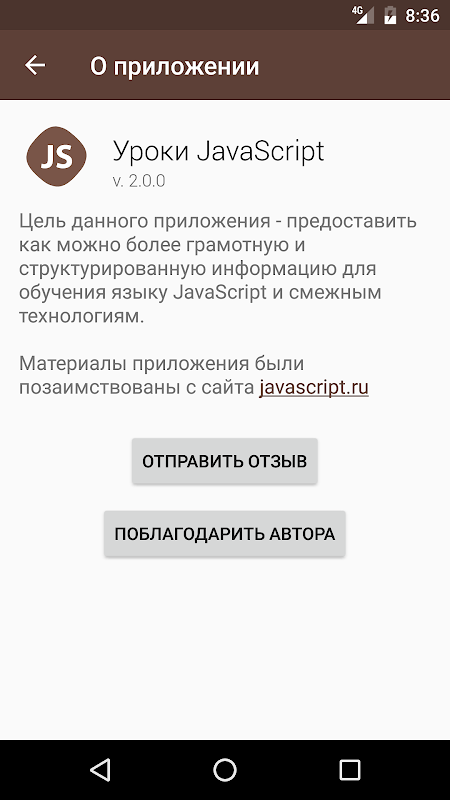 Цель данного приложения - предоставить как можно более грамотную и структурированную информацию для обучения языку JavaScript и смежным технологиям.