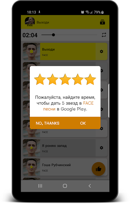 приложение "Фейс песни без интернета" содержит лучшие песни FACE :