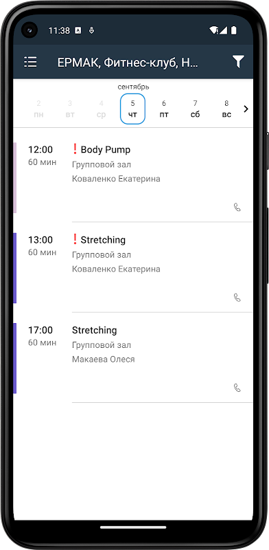 Mobiele applicatie voor bewoners van de ERMAK Fitness Club (Novocherkassk)