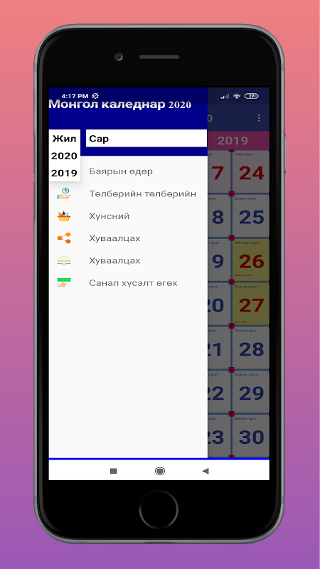 2020 оны хуанли: Энэхүү програм нь 2020 оны нийтийн амралт, баяр наадмыг багтаадаг. Та баяр наадам болон баяр ёслолоо төлөвлөхдөө энэ програмыг ашиглаж болно.