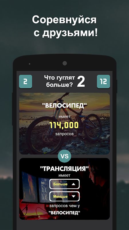 In dit spel moet je kiezen welke van de twee zoekopdrachten vaker werd bereikt